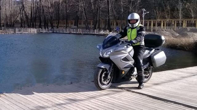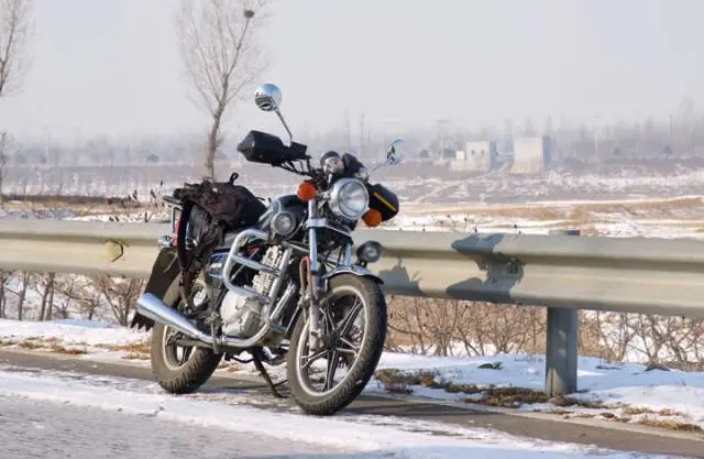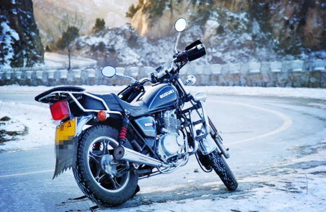 再说装备。不论头盔、摩托车服、手套,还是摩托车裤、靴子、护膝,在经济条件许可的情况下尽量用好一些的。正规国产品牌完全没有问题。进口品牌的舒适性、保暖效果可能会更好一些,但不要指望有太大的提高。一些接口处的缝隙需要格外注意,比如领口、袖口、裤口,必须采取仔细而有效的措施,防止行驶过程中寒风钻入,俗话说“针尖大的窟窿,斗大的风”,就是这个意思。抓绒脖套能更好的解决头盔和衣领之间的“脖子漏风”问题,很容易买到,价格也不贵。手套的选择不容忽视,一般一百~两百元的冬季防风保暖手套,可以基本要求,如果跑长路进山的话,建议里面再戴一双羊绒手套。不要小看这一薄薄的一层,保暖作用非常明显。电热手套也是不错的选择,除了防护性稍逊于专业骑行手套之外,加热保暖效果是最好的,但需要12V直流电源供电,所以要在车辆上加装点烟器插座作为电源。最后说到靴子,正规军工厂生产的冬季高帮军靴,保暖效果很好,至少比专用的摩托靴要暖和的多。注意一定要选择纯皮、毛里的那种。不过话说回来,脚部保暖一直是冬季摩旅的难题。因为脚部距离心脏最远,血液循环最慢,热量产生最少。所以除了选择保暖性尽可能好的靴子、鞋底垫上“暖宝宝”之外,最有效最彻底的方法,脚部还是要勤活动、多活动,以弥补热量的不足。