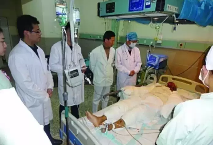小刘被送到仁慈医院烧伤科时,让医生吓了一跳。据烧伤科主任徐能武介绍,小刘被送来时,脖子以上找不到一块完好的皮肤,头发、眉毛全部被烧掉,甚至五官都已经分不清。经诊断,伤者全身70%的面积被三度烧伤,30%的面积为深三度烧伤,面部则为深二度烧伤,有生命危险。医院立刻组织专家进行会诊,进行了抗休克、敷药、补液治疗,这段时间要随时观察伤者的感染情况,度过危险期后,再考虑做植皮手术。
